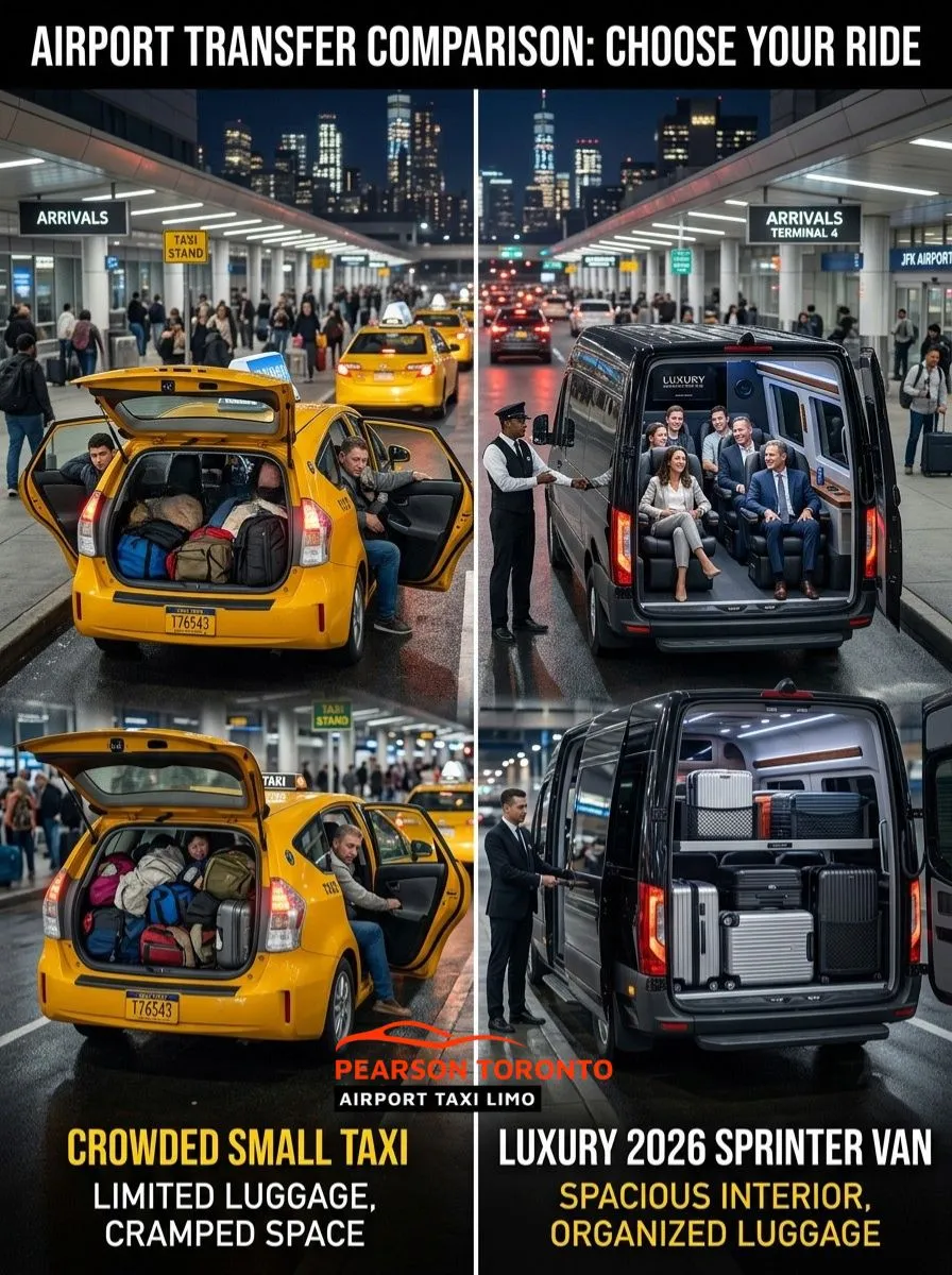 When it comes to airport transfers, choosing between an airport taxi van Toronto and a regular taxi or ride-sharing service can make a big difference. Here’s why our Toronto Pearson Airport Taxi Van service is the better choice: